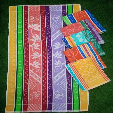 A towel is a piece of absorbent cloth or paper used for drying or wiping a surface. Towels draw moisture through direct contact. Colored bath towels.